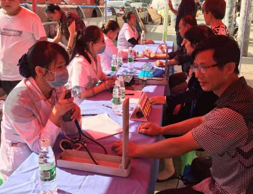 活动现场,来自黑龙江京科脑康医院的医护人员和志愿者们为提供各科免费健康咨询、测量血压血型、测身高体重、中医把脉、量血糖等,受到了附近居民的热烈欢迎,居民咨询热情高涨。